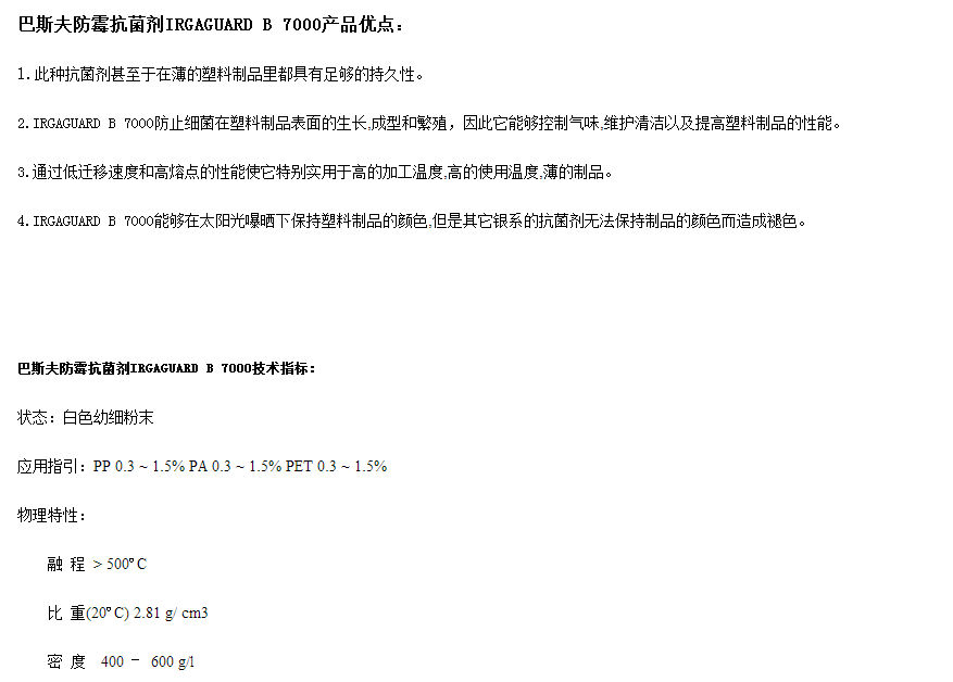巴斯夫防霉抗菌剂IRGAGUARD B 7000