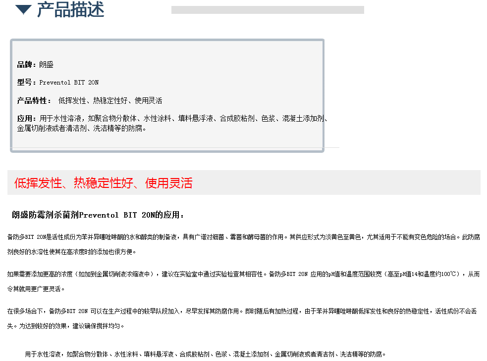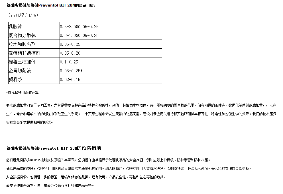 朗盛防霉剂杀菌剂Preventol BIT 20N