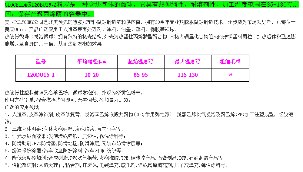 博力肯物理发泡剂120DU15-2(低温型) 美国进口羊巴粉 热膨胀塑料微珠