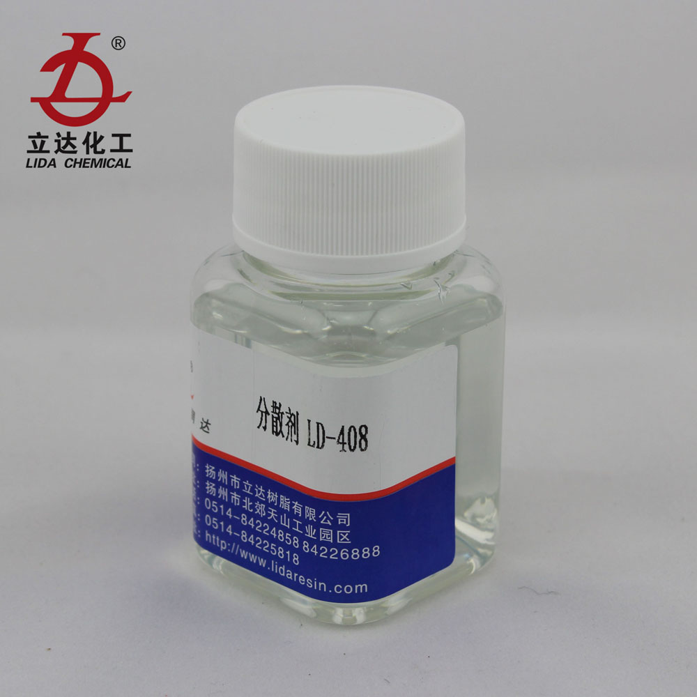具有梳型分子结构的水性超分散剂LD-408和408A是由聚丙烯酸为主的主链与高度优化的特殊聚合侧链组成,它既能强烈吸附在各种无机颜填料表面产生静电排斥力,又能在颗粒表面形成有效的空间障碍层,使颜填料在水性介质中具有卓越分散性及长久稳定性。408A它耐高温及一般酸碱水解条件,并与各种水性树脂及树脂乳胶相容,成膜后对涂层基体树脂性能影响小。LD-408适用于各种无机颜料、特别是碳酸钙及钛白粉分散,效果十分明显。而LD-408A适用于炭黑及透明氧化铁、纳米钛白、纳米碳酸钙,纳米氧化锌等无机纳米颜料及功能性填料的水相分散,是制备高浓度高分散高稳定及高相容色浆及水性涂料的理想选择。