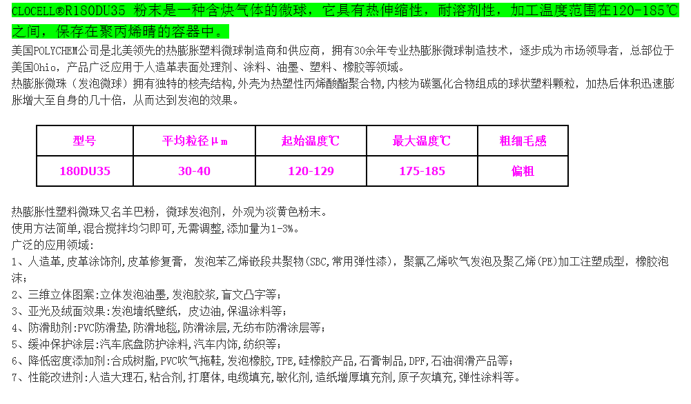 博力肯物理发泡剂180DU35(高温型) 美国进口羊巴粉 热膨胀塑料微珠