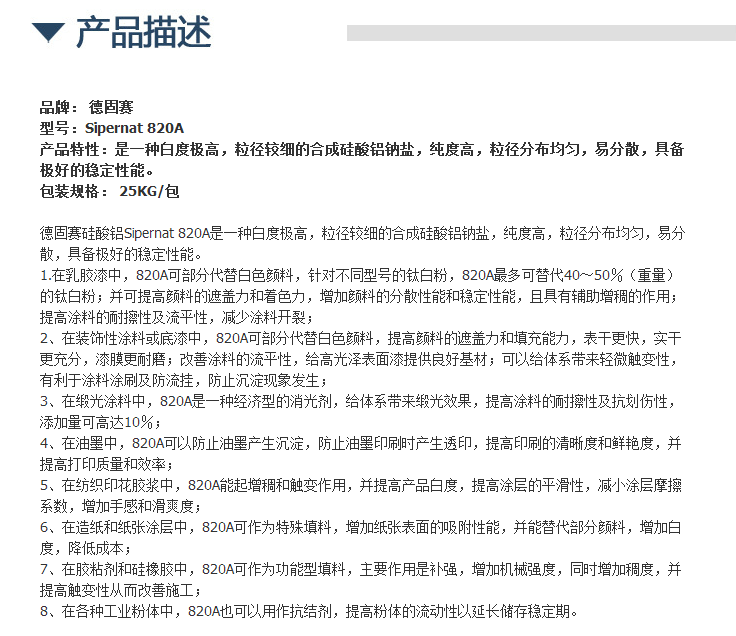 德固赛硅酸铝Sipernat 820A