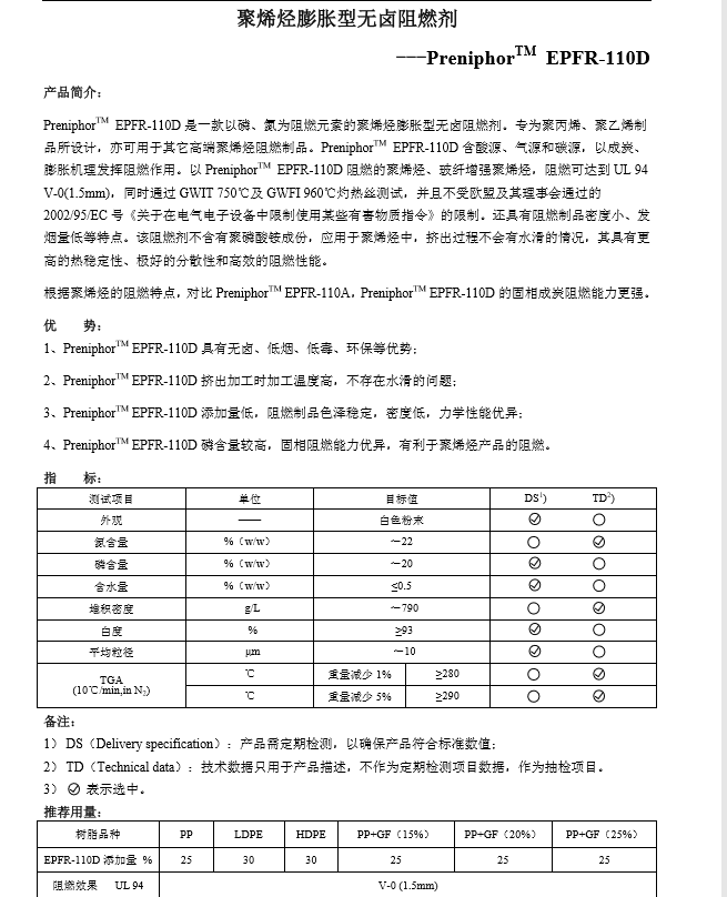 清远市普塞呋磷 PE无卤阻燃剂EPFR-110D