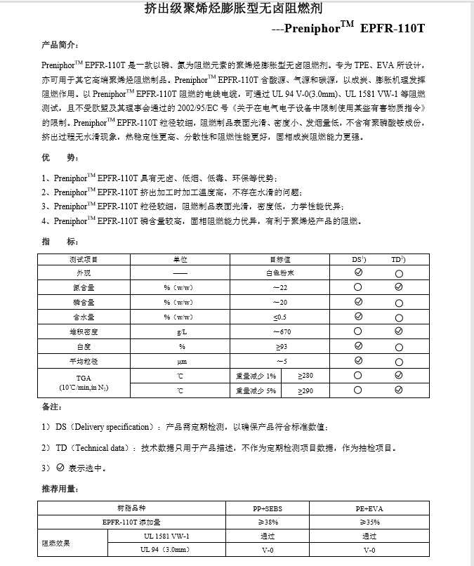 清远市普塞呋磷 TPE无卤阻燃剂EPFR-110T