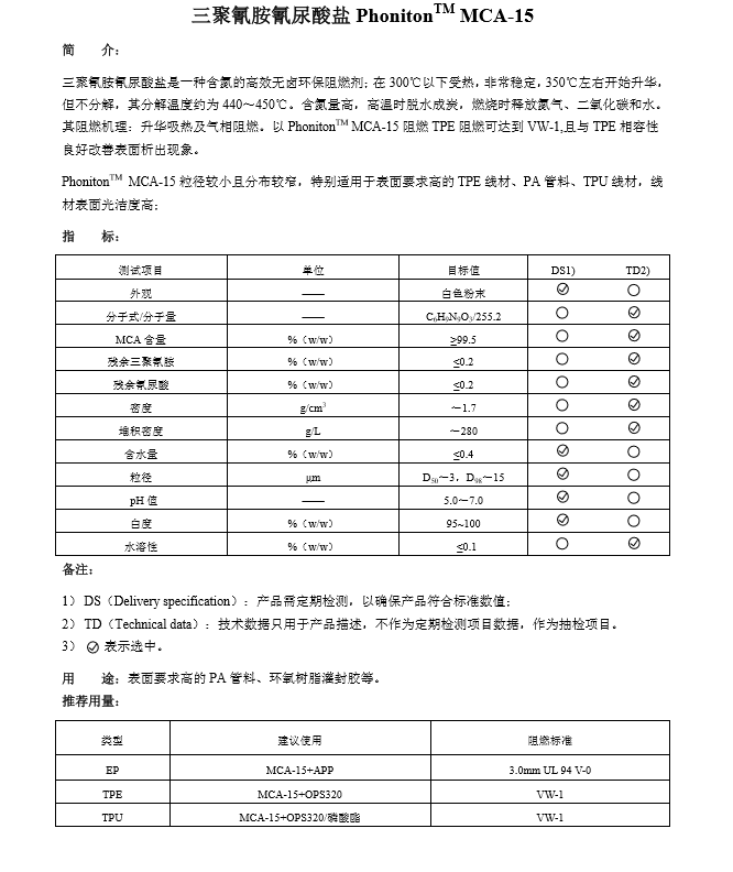 清远市普塞呋磷 尼龙无卤阻燃剂MCA-15