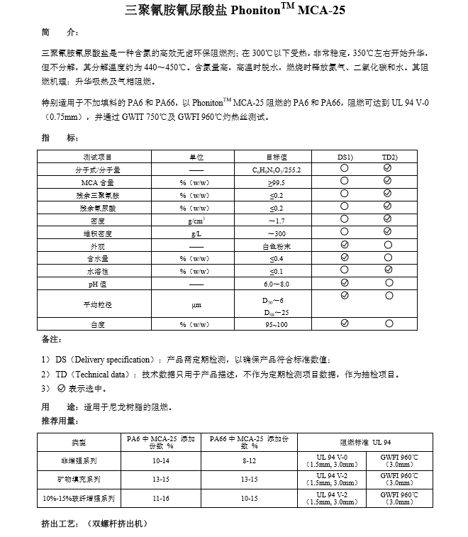 清远市普塞呋磷 高温尼龙无卤阻燃剂MCA-25