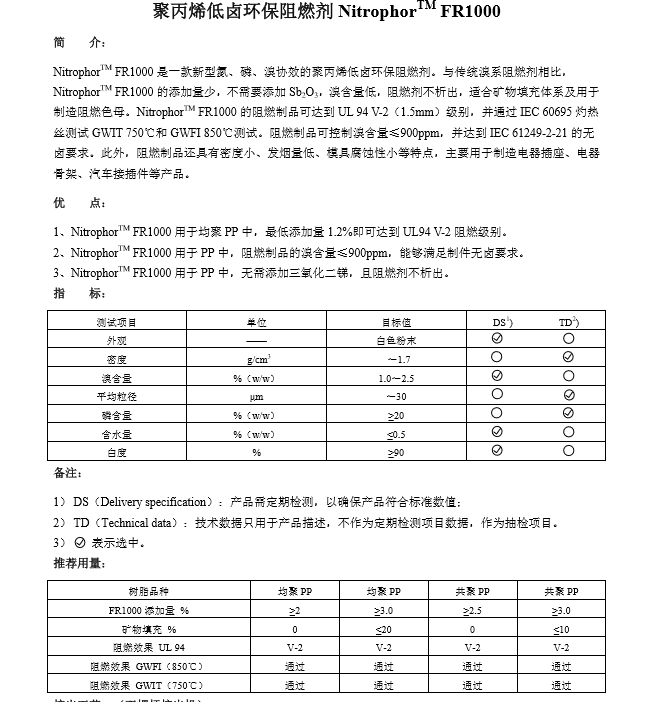 清远市普塞呋磷 PP环保阻燃剂 FR1000