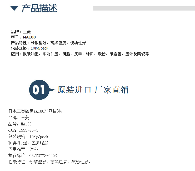 原装进*口 日本三菱碳黑MA100R