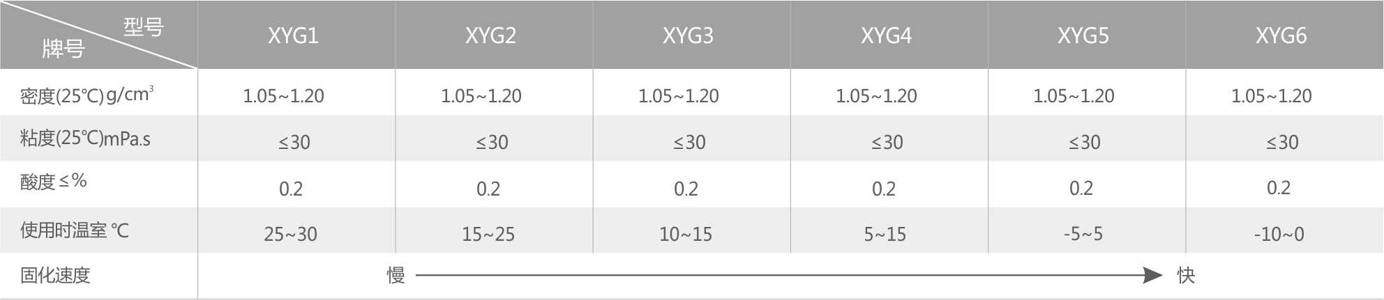 XY-201树脂请储存在室温≤25℃的通风处,因随着温度和储存时间的增加,树脂粘度会增大。