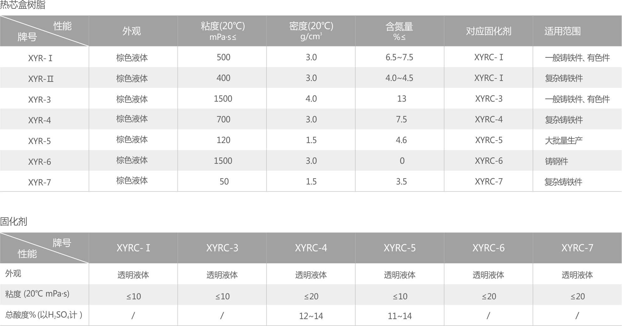 请注意:XYR-6呋喃热芯盒树脂所用的固化剂为树脂的20~40%