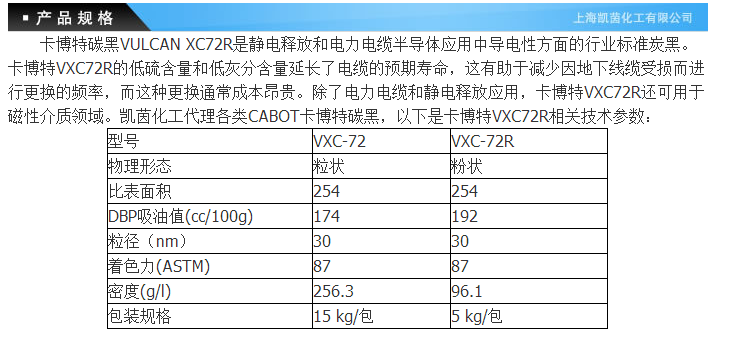 美国原装进*口 卡博特碳黑VULCAN XC72R/VXC-72导电碳黑