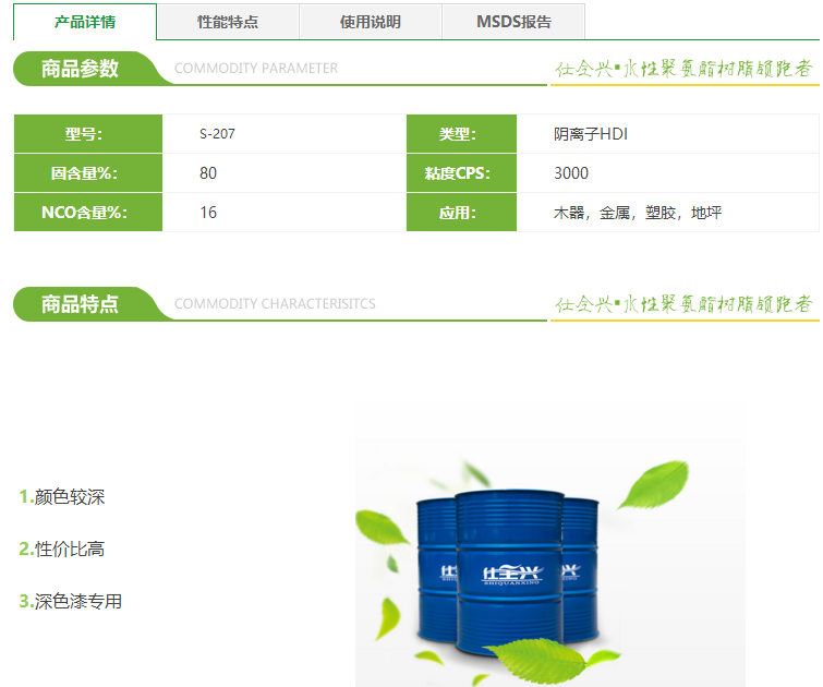 武汉仕全兴 S-207水性异氰酸酯固化剂