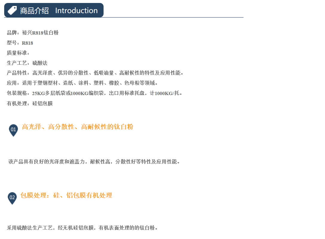 济南裕兴金红石型钛白粉 R-818