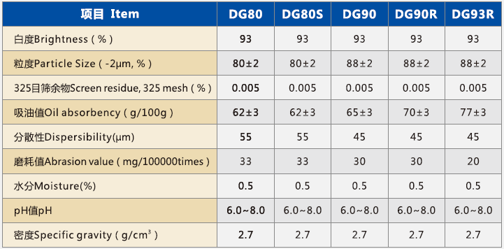 该系列产品主要应用于造纸行业,作为涂布或填料。产品白度高,磨耗值低。可显著提高纸张白度、平滑度、光泽度和不透明度,改善油墨吸收性、印刷适应性,可部分替代钛白粉。