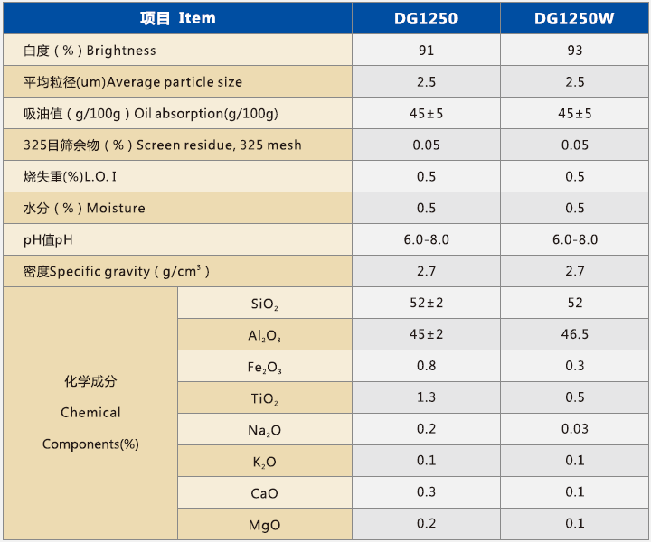 采用优质高岭土原料,通过球磨、煅烧、分级等工艺精心生产,产品白度高,铁、钛等杂质含量极低,遮盖力好,易分散,特别适合于涂料、橡胶、粘结剂、陶瓷等行业。