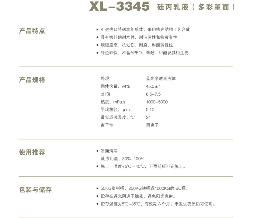 浙江新力化工 XL-3345硅丙乳液(多彩罩面)