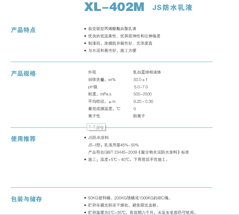浙江新力化工 XL-402M JS防水乳液