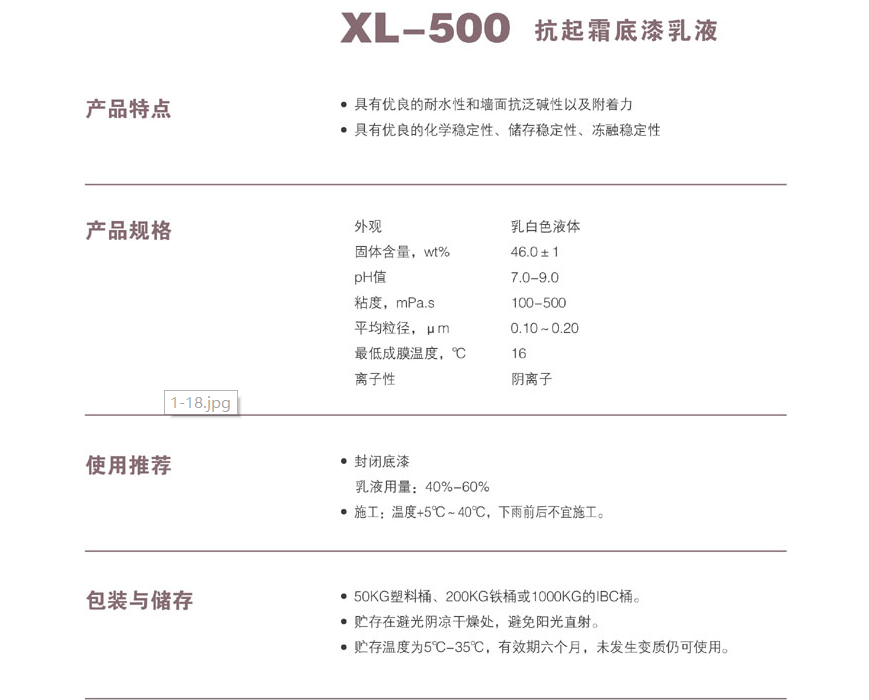 浙江新力化工 XL-500 抗起霜底漆乳液
