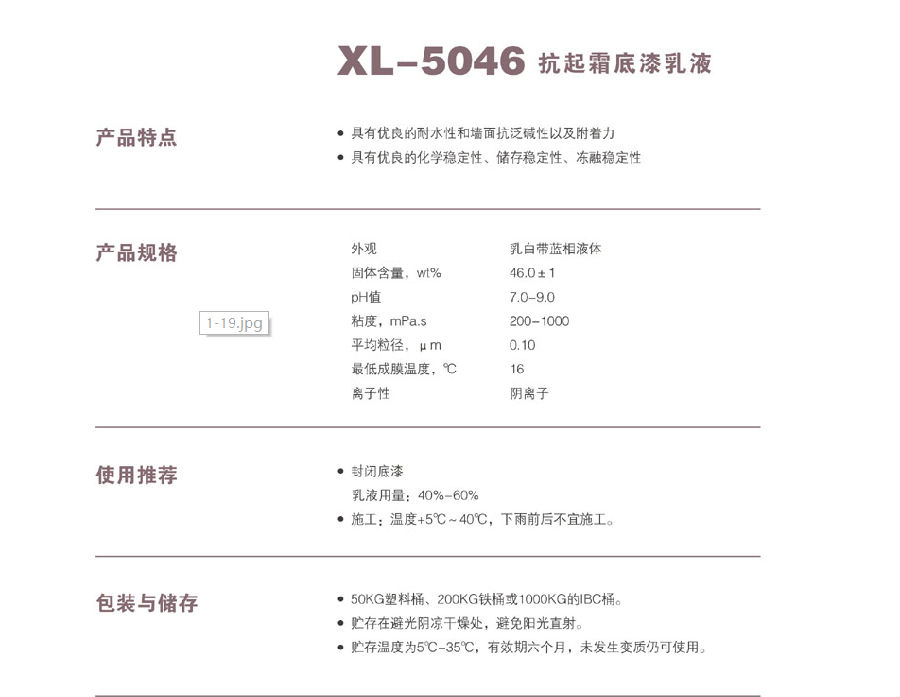 浙江新力化工 XL-5046 抗起霜底漆乳液