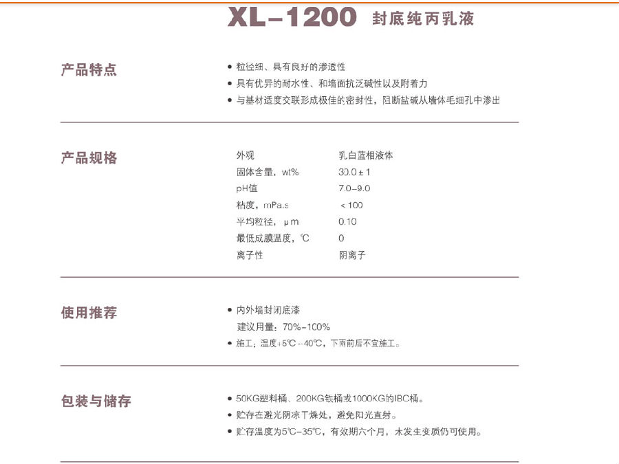 浙江新力化工 XL-1200 封底纯丙乳液