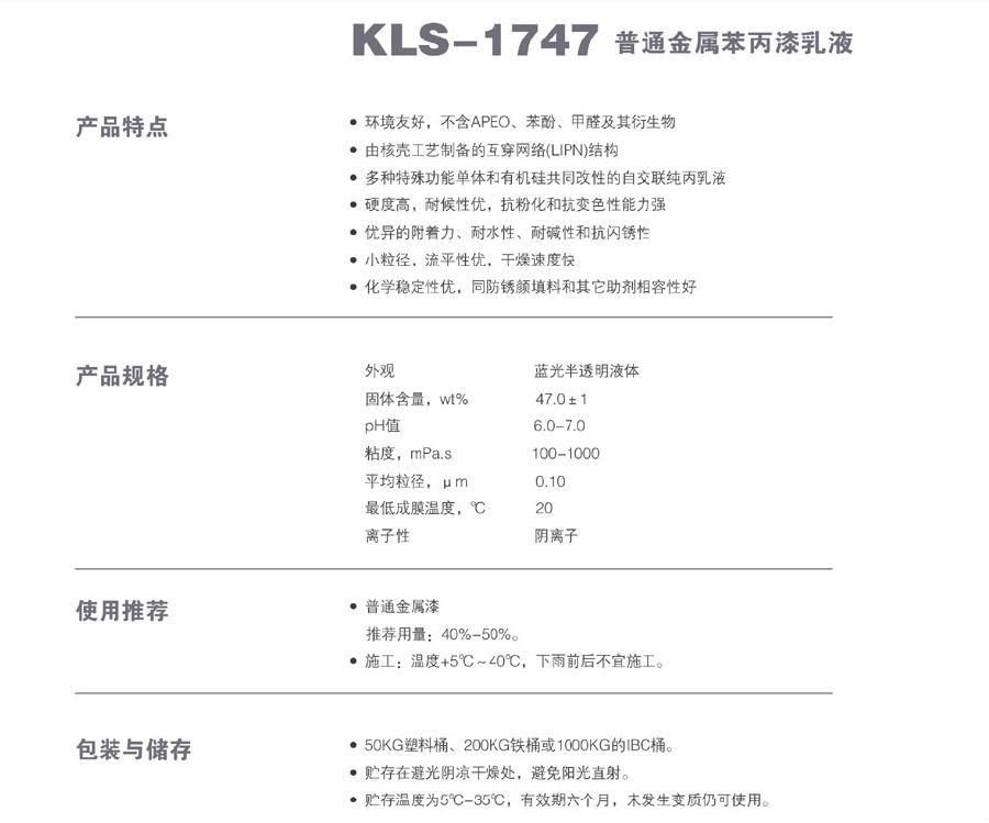 浙江新力化工 KLS-1747 普通金属苯丙漆乳液