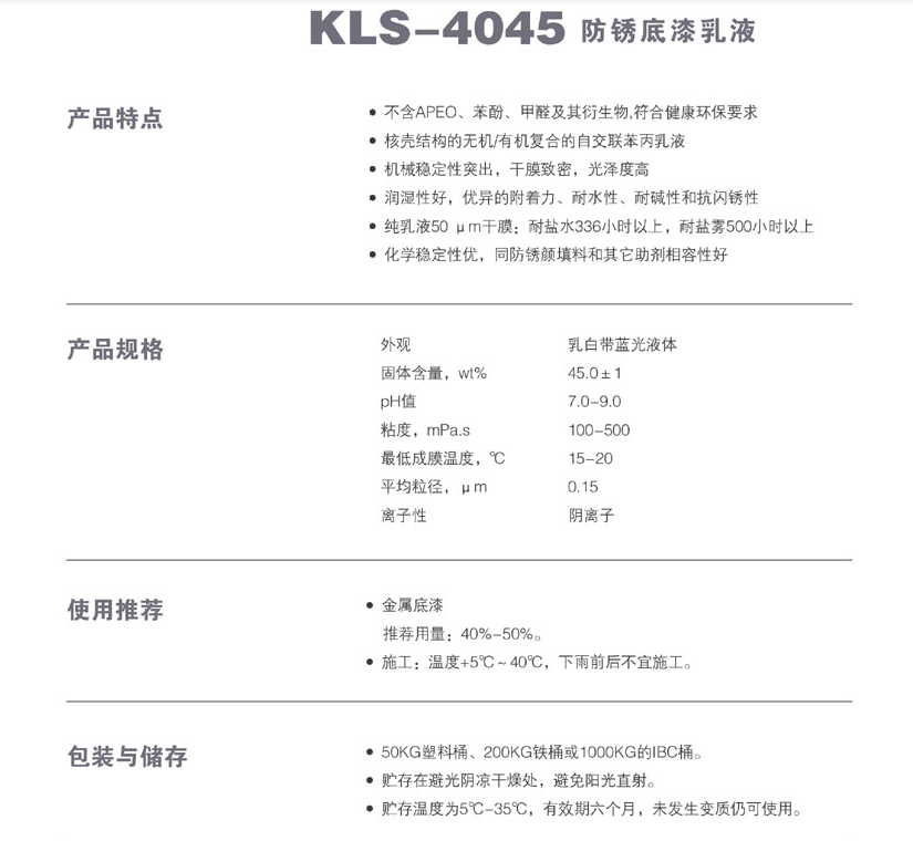 浙江新力化工 KLS-4045 防锈底漆乳液