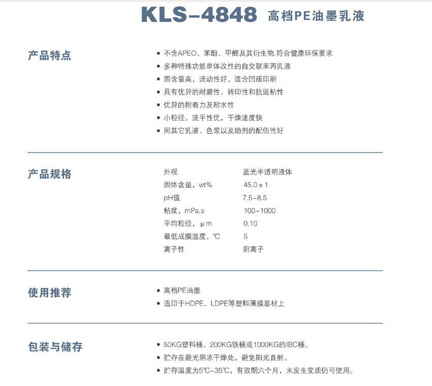 浙江新力化工 KLS-4848 高档PE油墨乳液
