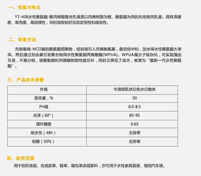 青岛新宇田 YT-408 水性聚氨酯-聚丙烯酯复合乳液