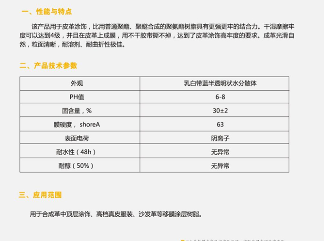 青岛新宇田 YT-306水性聚氨酯树脂皮革涂饰剂