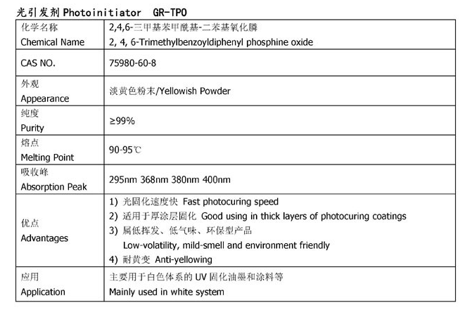 湖北固润 自由基型光引发剂 GR-TPO