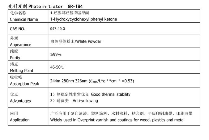 湖北固润 自由基型光引发剂 GR-184