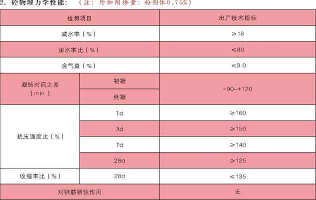 1、本品为浅棕色粉末(液状为棕褐色液体),掺量为胶凝材料的0.5%-1.5%(液体按折干计算),减水率可达12%-30%,节约水泥10%-20%。