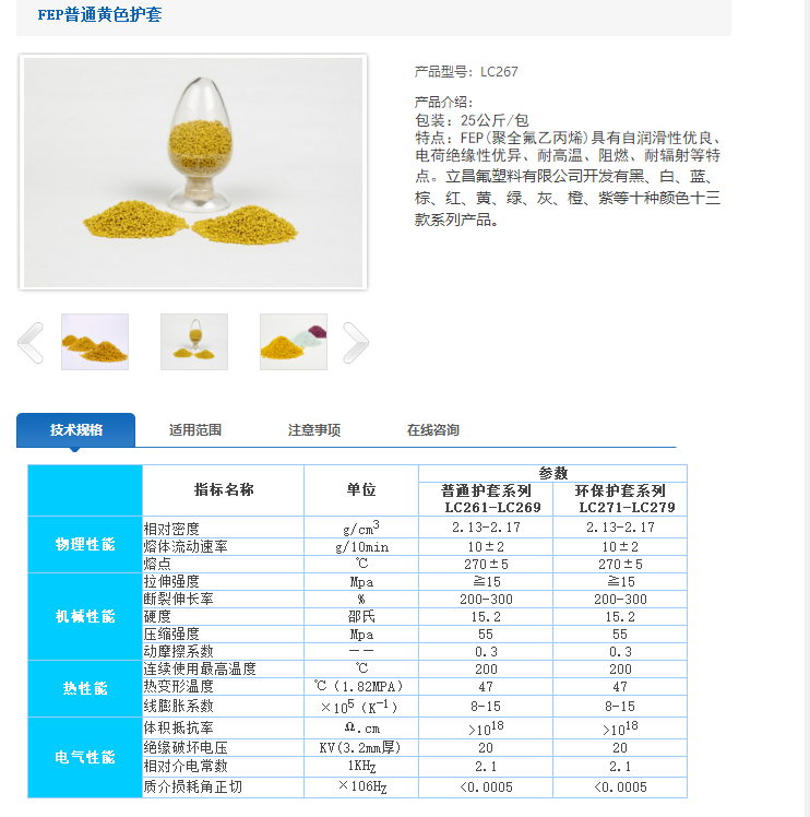 立昌科技 FEP普通黄色护套 LC267