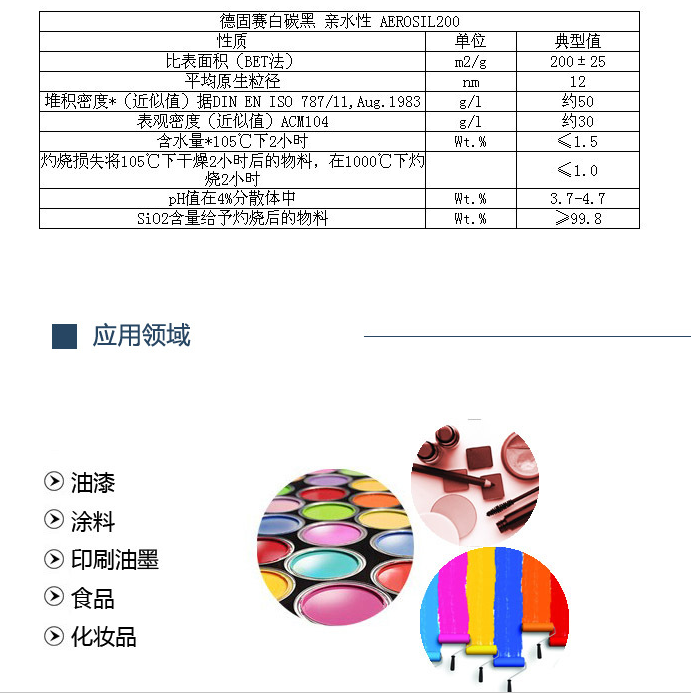 德国 德固赛白炭黑A200 (白碳黑A200) 气相二氧化硅