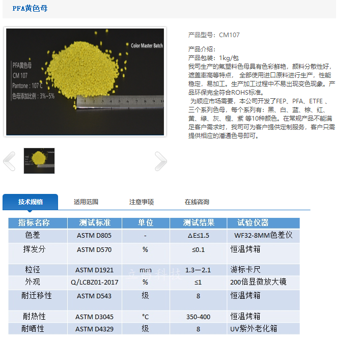 立昌科技 PFA黄色母 CM107