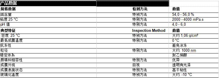 VINAPAS?EP 701K是基于乙酸乙烯酯和乙烯的聚合物分散体。VINAPAS?EP 701K具有优良的伸长率、耐水性和柔韧性。