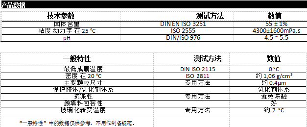 EZ3010乳液表现出优异的颜料结合性能。该产品主要用作低气味、低挥发和无溶剂的内墙涂料的基料,并可应用于合成树脂混合使用的内墙涂料中。