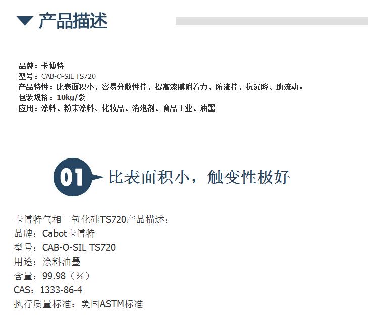 美国原装进*口 卡博特气相二氧化硅白炭黑TS720