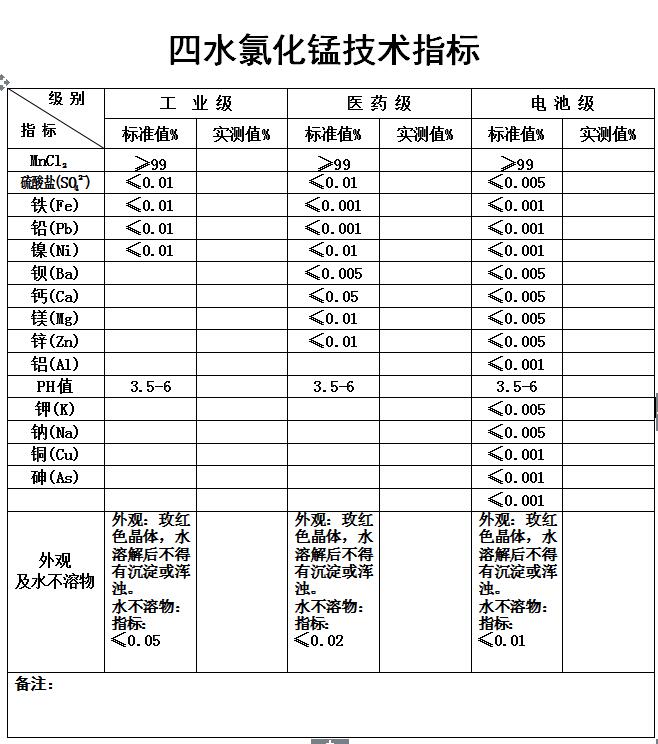 氯化锰又名氯化亚锰、二氯化锰、四水合氯化锰等等。