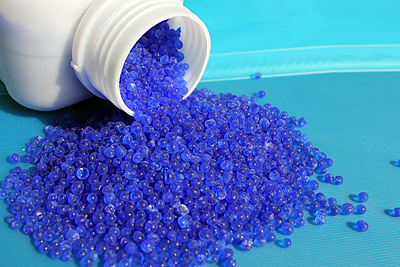 蓝色颗粒、半透明玻璃状,有蓝胶,变色硅胶,蓝胶指示剂3种。其随空间介质相对湿度的变化而改变对水蒸气的吸附量,而且其颜色随吸湿量增长由蓝色退变成红色,烘干后仍恢复原色。除具有一般干燥剂的作用外,还具有直观指示作用。根据产品的指示色标可确定空间介质相对湿度及吸湿量,灵敏度高。
