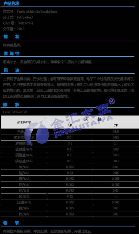 天津金汇太业 六水三氯化铁