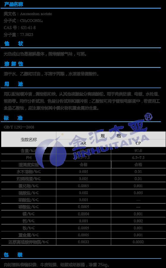 天津金汇太业 无水醋酸铵