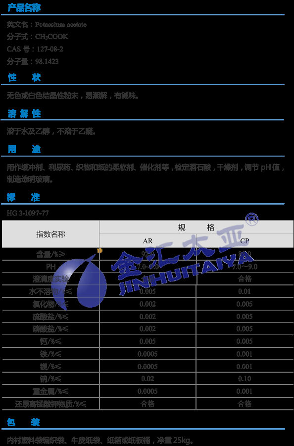 天津金汇太业 无水醋酸钾