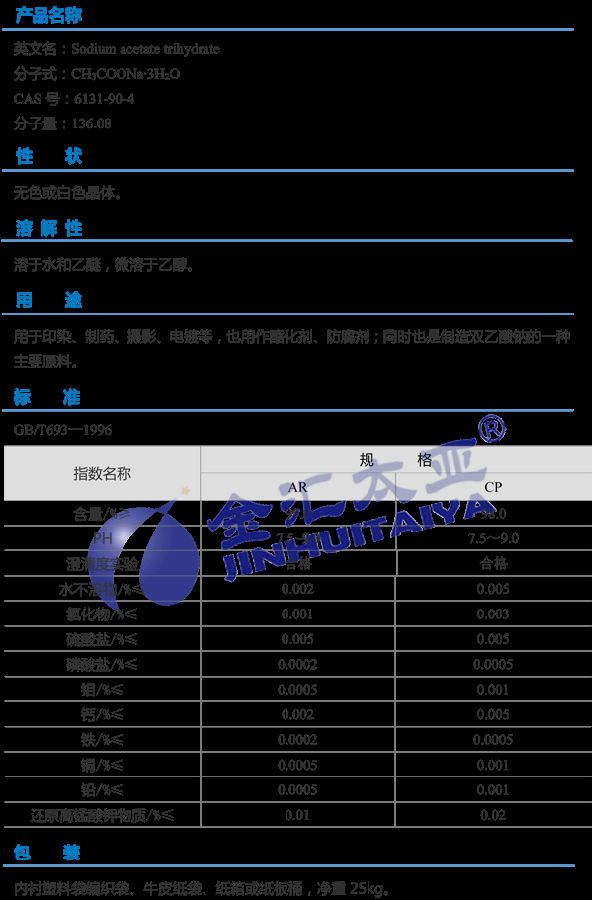 天津金汇太业 三水醋酸钠