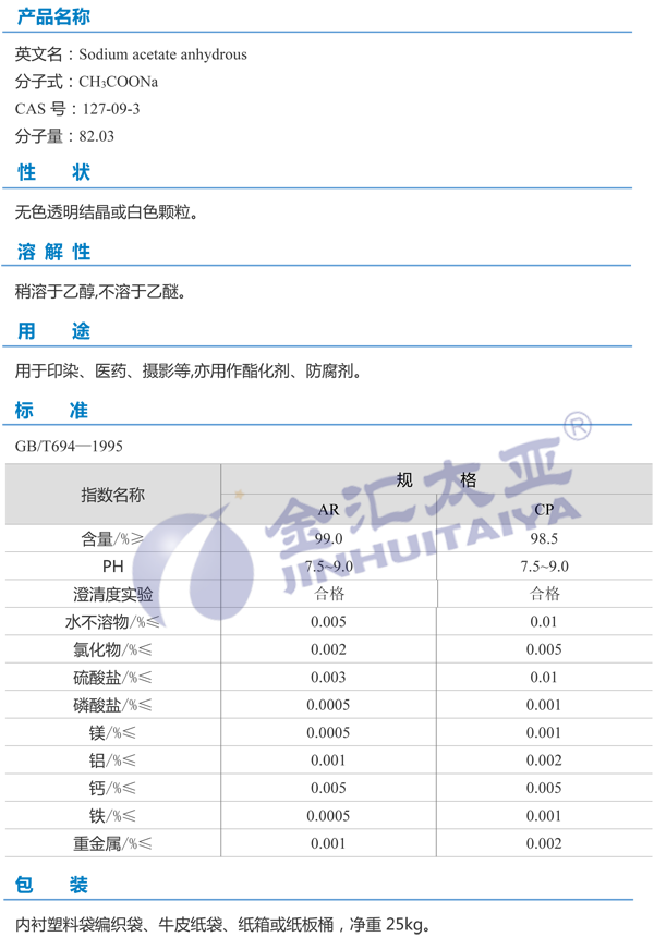 天津金汇太业 无水醋酸钠