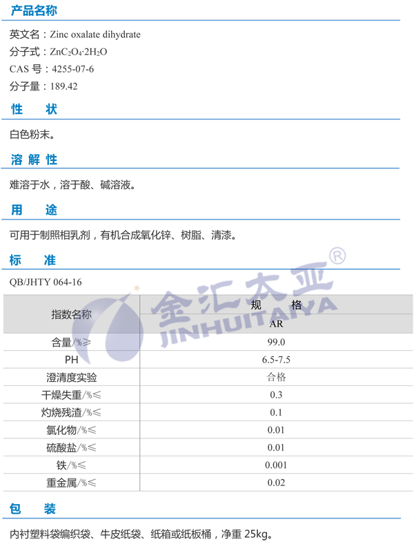 天津金汇太业 二水草酸锌