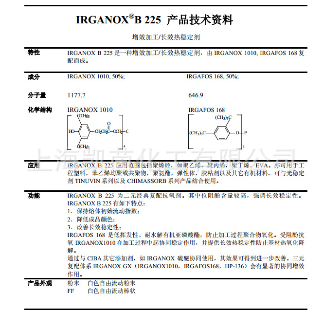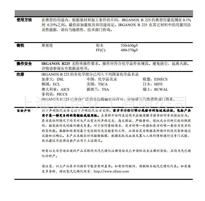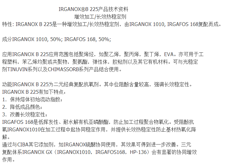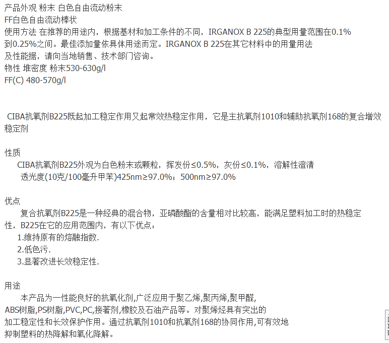 正品保证德国BASF巴斯夫抗氧剂B225 IRGANOX B225