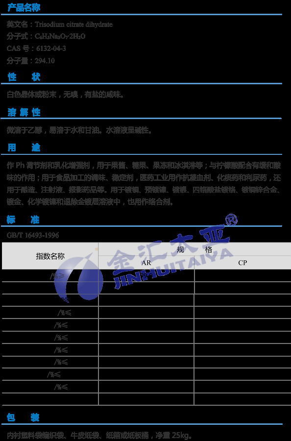 天津金汇太业 二水柠檬酸钠