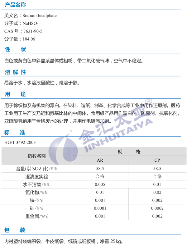 天津金汇太业 无水亚硫酸氢钠