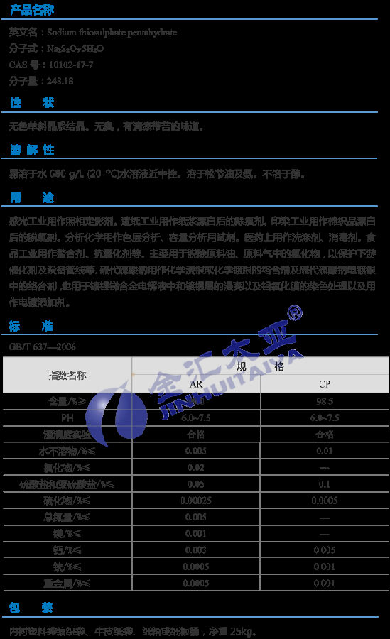 天津金汇太业 五水硫代硫酸钠